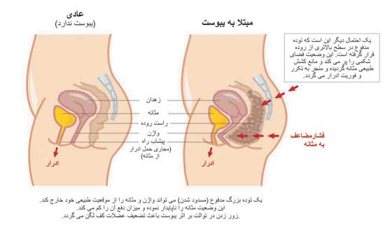 چگونه یبوست بر کنترل مثانه تاثیر می گذارد؟یبوست می تواند باعث نشت تصادفی از مثانه گردد. یک روده سر پرمیزان ادراری را که مثانه می تواند در خود نگاهدارد را کم می کند و شما مکررا و با عجله برای رفتن به دستشویی احساس نیاز می کنید. ![]() |