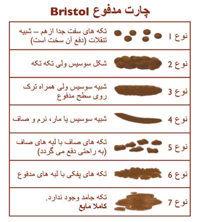 ظاهر مدفوع شما باید چگونه باشد؟مدفوع شما باید به رنگ قهوه ای کمرنگ و یا پررنگ، به شکل سوسیس، نرم ولی محکم بوده و به راحتی و با بوی حداقل دفع گردد. تلاش کنید تا دفع مدفوعتان از نوع 3 و یا 4 باشد. ![]() |