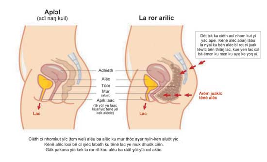Wäl cɔl 'lakatïb/laxatives' ë yïc diäk: • Wäl wɛi kutïc (Bulking Agents) ‐ Käk amët ciëthic cɔl alɔc arot määt ë yäc yïc (ciëth). Dëk bïny ka 6‐8 ë pïu akökaköl ë yen cɔl apiɛth. |