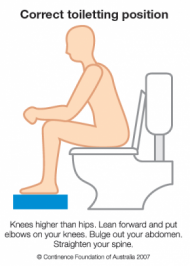 Toileting habits - Go to the toilet as soon as you need to and empty you bowel fully. Remember to relax.