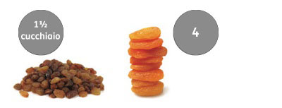 - 30grammi di frutta secca (1 cucchiaio e ½ di uva passa o albicocche secche)