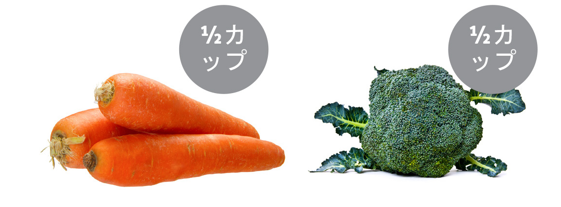 | ½カップの調理済み緑色野菜またはオレンジ色の野菜 |