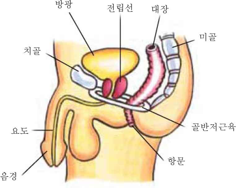 전립선은 남성에게만 있는 분비선입니다. 호두만한 크기이고 방광 경부 아래에 위치해 있으며 방광 출구 (요도) 를 둘러싸고 있습니다. 전립선은 우유 같은 액체를 만들어내는 데 이는 정액의 일부로 정자의 영양분이 됩니다. 남성은 나이가 들면서 전립선이 비대해집니다. 이는 수년에 걸쳐 진행되며 방광 문제를 일으키기도 합니다. 방광 조절 장애는 다른 건강상의 이유 때문에 발생하기도 합니다. 방광 조절 장애가 있는 남성은 이 때문에 속상해 하거나 창피해 하기도 합니다. 방광 조절 능력에 변화가 있거나 전립선이 염려되는 경우 의사나 실금전문 조언인과 상담하세요. |