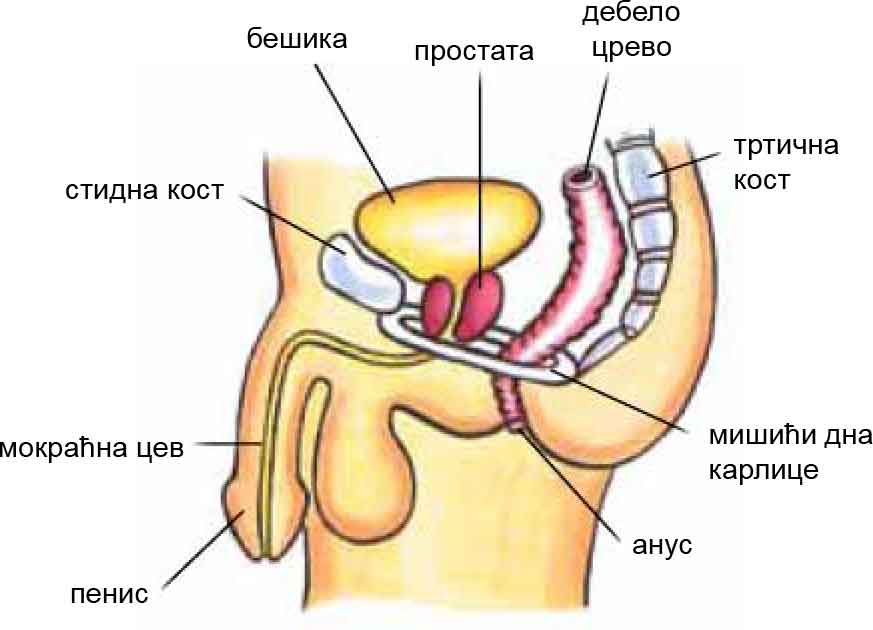 Простата је жлезда коју имају само мушкарци. Она је величине ораха и налази се испод врата бешике и окружује мокраћну цев. Простата лучи млечну течност, која је део сперме и храни је. Како мушкарци старе, тако се жлезда простате повећава. То траје више година и код неких мушкараца може да изазове проблеме са бешиком. До слабљења контроле бешике може да дође и због других здравствених разлога. Мушкарци са слабом контролом бешике могу да се нервирају и стиде због овог проблема. Уколико дође до промена које се тичу контролисања рада бешике или ако сте забринути због простате, обратите се свом лекару или саветнику за инконтиненцију. |