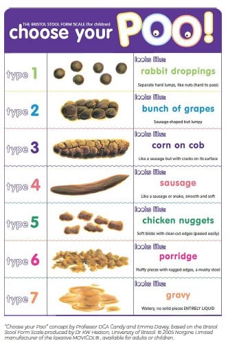 If you think your child may have small hard poo which are difficult or painful to pass, see your doctor or pharmacist. Your child may have constipation. It is important your child’s poos (bowel motions) are like a soft smooth sausage. There are foods that help poo stay soft such as apples, pears and kiwi fruit. Also drink lots of water.